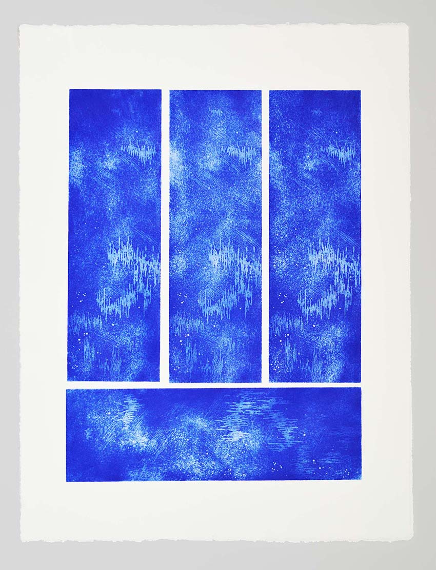 Azul 3+1 Publié 4 avril 2014 à 850 × 1112 dans La série Aithêr ← Précédent Suivant → Azul 3+1 Serie Aithêr Gravure réalisée à partir d’une plaque de 12 x 38 cm – 4 impressions Format 50 x 65 cm J’aime chargement…